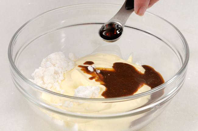 Depois, adicione baunilha e misture muito bem com um fuet.